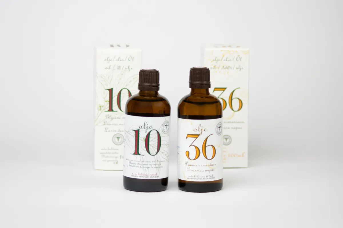 Ulje 36 (100 ml) je 100% prirodno, hladno cijeđeno, nerafinisano i nefiltrirano jestivo ulje košpica kajsije i repice.